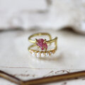 果実のように鮮やかなピンク、原石らしい表情が魅力的なトルマリンと、自然な丸みと輝きが上品なベビーパール。