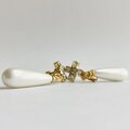樹脂製ドロップパールとクロスビジューイヤリング/ホワイトピンク/G/made in japan