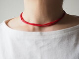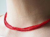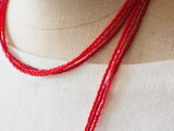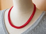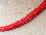 3種類の赤い粒ビーズの3連ネックレスを、お好きな長さでお作りします。
