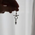 古代文字の記号のようなものがぶら下がる耳飾り。