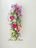 落ち着いたコスモスのスワッグです。チョコレートコスモスの赤茶色が効いています。今回も綺麗な作品をありがとうございました。
