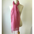 お値引品❣桜染めリネンストール-麻100%草木染無事に受け取りました!とても愛らしい美しいピンク色で感激しました。糸の緩いところはまったく気にならないです。アフターケアの点もお気遣いありがとうございます。素敵な染物の作品をありがとうございました。こんなにきれいな色を作ってくれる、農家の方の桜の木にも感謝致します。