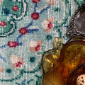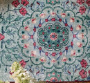 大輪フラワーメダリオンが中心に咲き誇り、 シャビーレッドの小花やビーズアクセントがスパイス