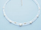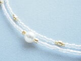 【2way】パール+クリア 2連ビーズネックレス ブレスレット チョーカー カジュアルパール 涼やか 透明 水滴