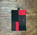 黒と赤、柄布の組み合わせに赤い刺し子風ステッチが映え、さりげないアクセントになっています。