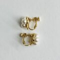 3パールイヤリングS/クローバーデザイン/ホワイトベージュ/made in japan