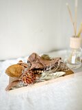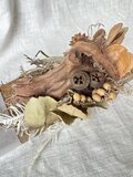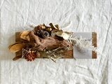 足場板と味わい深い流木をベースに、個性的なドライの実を合わせたボタニカルトレイ。