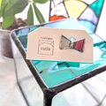 ステンドグラスのアクセサリーで、耳元に小さなアクセント。リボンの形のステンドグラスのイヤリング/ピアス