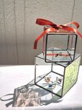 ステンドグラスのアクセサリーで、耳元に小さなアクセント。リボンの形のステンドグラスのイヤリング/ピアス