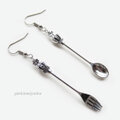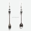 王冠のついた大きめのフォークとスプーンの左右異なるモチーフのフックピアスです