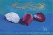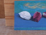 アクリル「小さな貝殻と小さなバラのつぼみ」