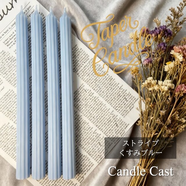 ストライプテーパーキャンドル・くすみブルー(4本セット)ソイキャンドル