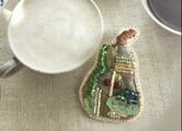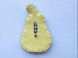 パッチワーク風にデザイン刺繍した洋ナシブローチです。