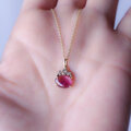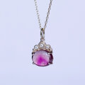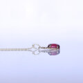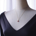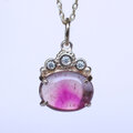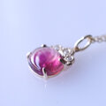 上部には少し大き目のメレダイヤを3石あしらったデザインで、このトルマリンによくマッチしてフェミニンな美しさを楽しめるネックレスに仕立てあがっています。