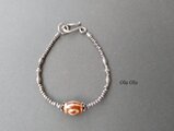 非常に入手困難なこの古代とんぼ玉の起源は、今から3600年~4600年前のインダス文明期にまで遡るといわれており、植物から採取したナトロンと呼ばれる天然ソーダでカーネリアン(紅玉随)の表面に文様を描き、300℃~400℃の低温で焼成することにより文様を白化させカーネリアンに定着させます。