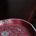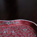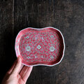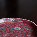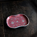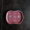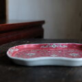 花唐草と漢字と蝙蝠◆中国景徳鎮 色絵平皿プレート 煎茶茶器 チャイナレトロ シノワズリ インテリア 小物置き