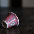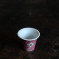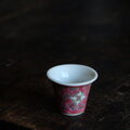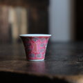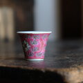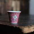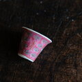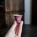 花唐草と漢字◆中国景徳鎮 色絵小ぶり猪口(茶杯) 煎茶茶器 チャイナレトロ シノワズリ インテリア オブジェ