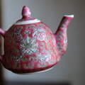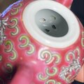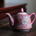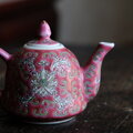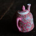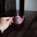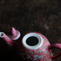 花唐草と蝙蝠◆中国景徳鎮 色絵小ぶり急須 煎茶茶器 チャイナレトロ シノワズリ インテリア オブジェ