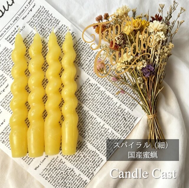スパイラルテーパーキャンドル(細)・国産蜜蝋キャンドル(4本セット)