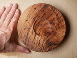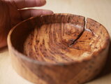 虫食い穴や大きな節のある表情豊かな栗材を、刳り込んで製作した丸鉢です。