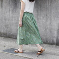 軽くて、さらり。優しい肌触り。ボタニカル ギャザースカート( ダークシーグリーン )ポケット リーフ 植物模様