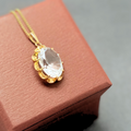 澄んだクォーツが揺らめく品格あるペンダントネックレス。