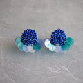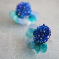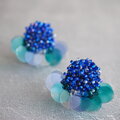 『Beadspan round 粒々 』(紫陽花・ブルー)イヤリング/ピアス【受注】