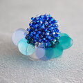 ビーズで出来た粒々感のある丸にスパンコールのフリルをたっぷりつけたピアスです。