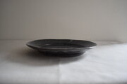 ワイドリム23丸皿黒土ムラサキ貫入