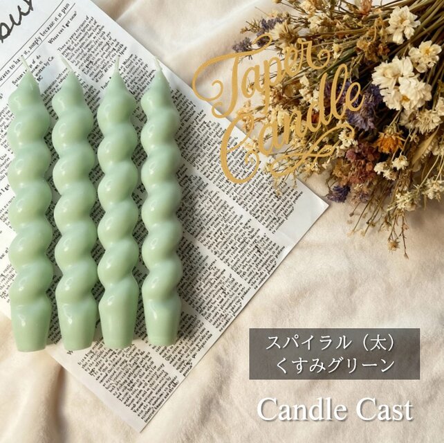 スパイラルテーパーキャンドル(太)・くすみグリーン(4本セット)ソイキャンドル