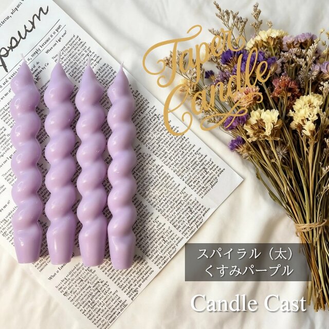 スパイラルテーパーキャンドル(太)・くすみパープル(4本セット)ソイキャンドル