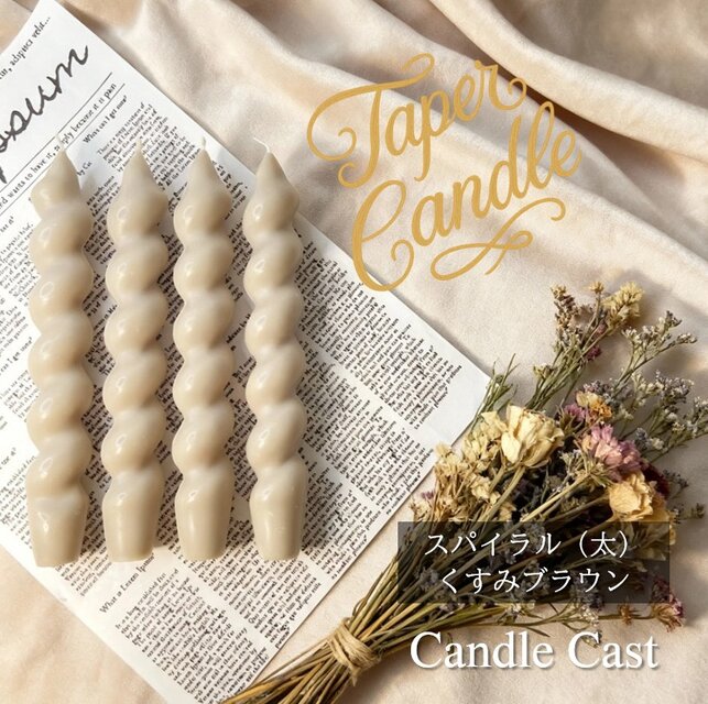 スパイラルテーパーキャンドル(太)・くすみブラウン(4本セット)ソイキャンドル