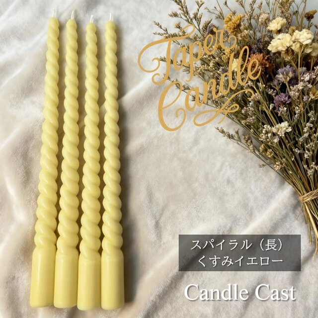 スパイラルテーパーキャンドル(長)・くすみイエロー(4本セット)ソイキャンドル