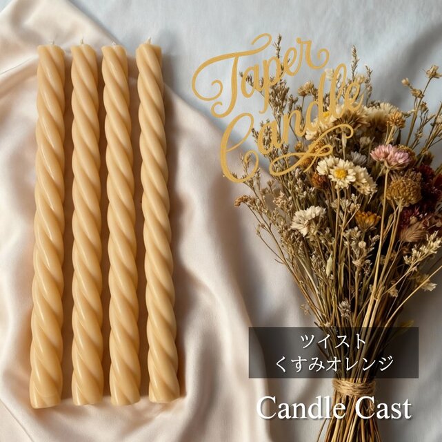 ツイストテーパーキャンドル・くすみオレンジ(4本セット)ソイキャンドル