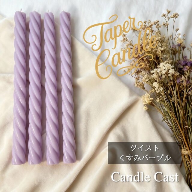 ツイストテーパーキャンドル・くすみパープル(4本セット)ソイキャンドル