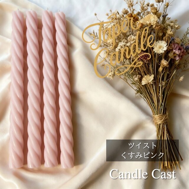 ツイストテーパーキャンドル・くすみピンク(4本セット)ソイキャンドル