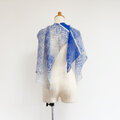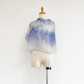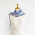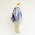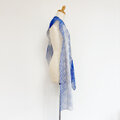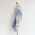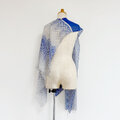 ブルーとホワイトの爽やかな印象のシルクシフォンスカーフです。ジグザグ模様とアシンメトリーな形が巻き方によって様々な表情を表現してくれます。縁はオートクチュールの縫い方で手作業でかがり、ミシンでは出せない高級感としなやかさがあります。優しいさわり心地と風をまとう軽やかなスカーフで首を温めたり、日よけにと便利に活用できます。