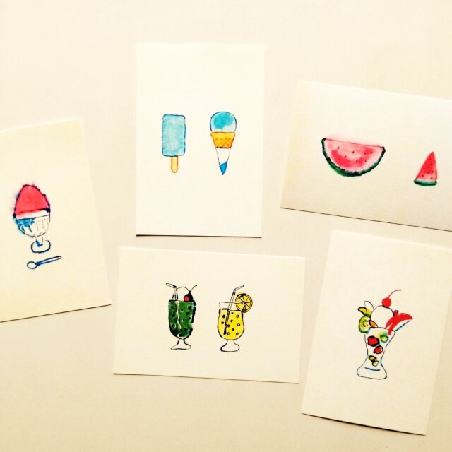 どこか懐かしい夏の食べ物を集めたポストカードセットを作りました。