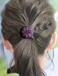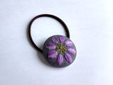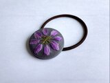 パープルカラーのボタニカルなデザインヘアゴムです。