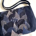 点と線模様製作所さんの生地を使用して、繊細で美しい刺繍がポイントのショルダーバッグをお作りしました♪