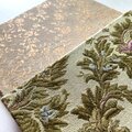 希少価値の高いヴィンテージ生地です。ヨーロッパの古典タペストリーを彷彿とさせる植物文様の織地で、作品全体に重厚感を添えるデザインです。ライムグリーンの様な緑と葡萄色の糸で織り出された花唐草模様は、17~19世紀の西洋装飾芸術を思わせつつ、日本の緞子にも通じる格式をたたえます。密な織りと豊かな質感が、持ち手の所作を静かに引き立て、装飾性と精神性を共に担う素材として美しく機能します。