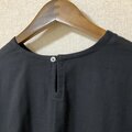 襟ぐりは後ろあきで、共布でループとナチュラルな雰囲気の貝ボタンで仕上げてあります。