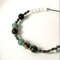 小粒で可愛らしい天然石を組み合わせた1点もののマクラメブレスレットです。