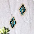 ブルー螺鈿と黒漆のスクエアピアスイヤリング2208