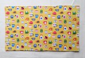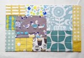 お花柄やにわとり、ドット、くまカフェなど、様々なデザインの緑系の生地を組み合わせました