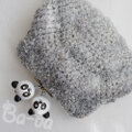 グレーのグラデーションのふわふわ毛糸を細編みで編み上げ、
