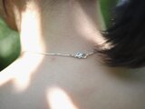 雫形の粒を極細シルバーラインで繋ぎ、繊細で装飾感のあるシルバーネックレスに仕立てました。