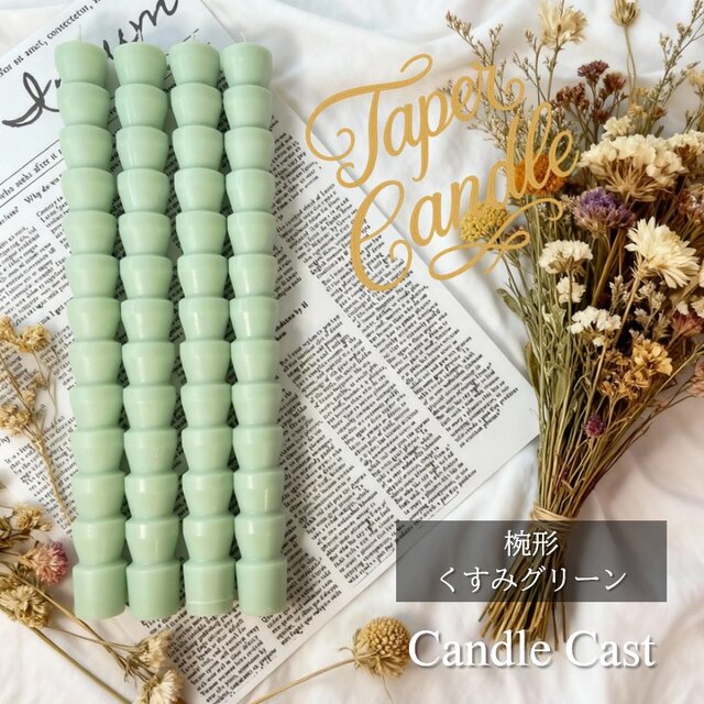 椀形テーパーキャンドル・くすみグリーン(4本セット)ソイキャンドル