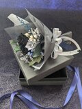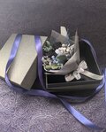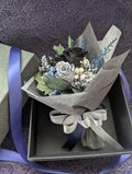 プリザーブドフラワーのミニ黒薔薇とシルバーローズ、小花やグリーンを少しずつ使用したミニ花束です。