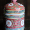 萬寿無疆◆中国景徳鎮 色絵蓋付茶壷 器 茶器 ビビットピンク チャイナレトロ 【トリアシ有り】